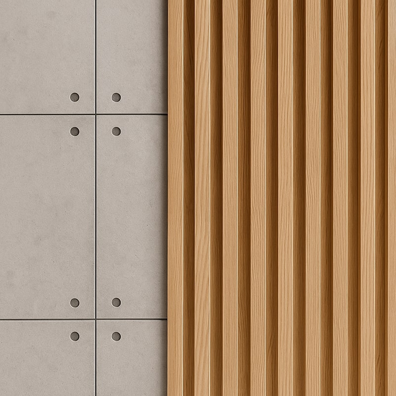 Paneles decorativos y palillería de madera que ofrecen un estilo moderno y sofisticado, creando ambientes cálidos y con diseño arquitectónico.
