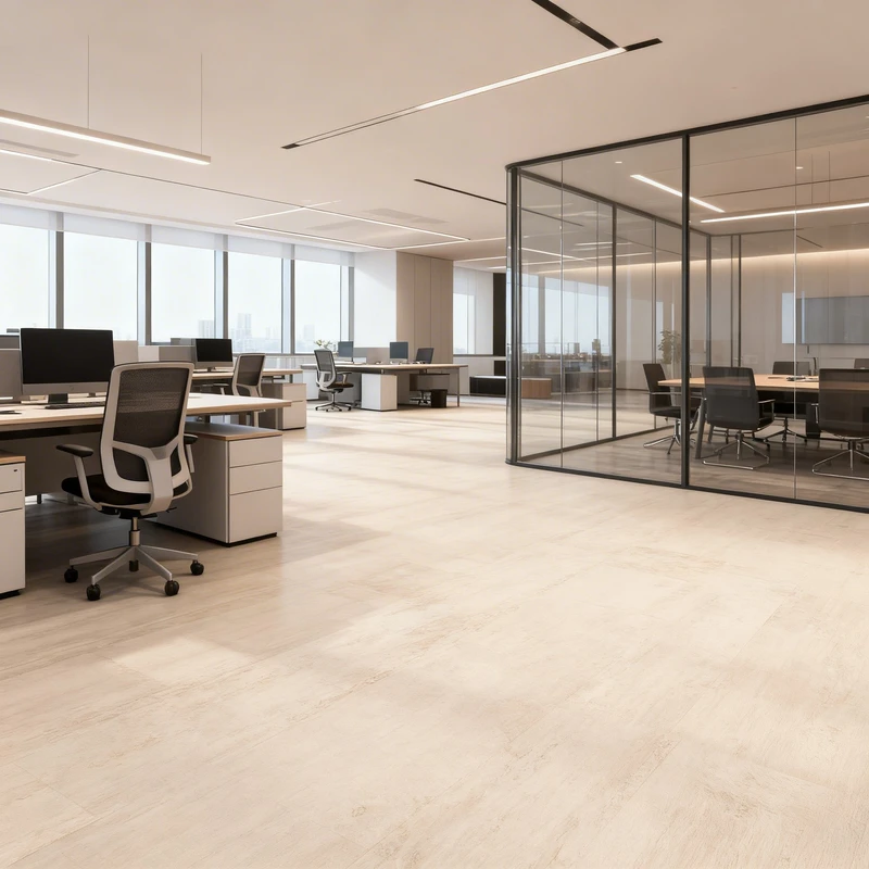 Su acabado marmoleado aporta una estética equilibrada que ayuda a disimular el desgaste propio del tránsito, lo que la convierte en una opción muy práctica para oficinas, centros educativos, comercios o edificios públicos.